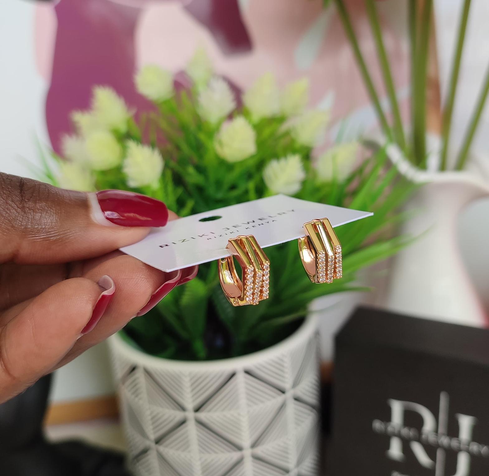 These rose gold earrings exude elegance and warmth, adding a delicate yet sophisticated touch to any look.