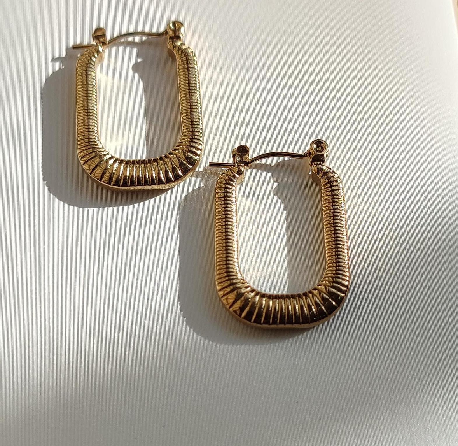 The Ripple Hoop Earrings feature a textured wave-like design, adding depth and elegance to a classic silhouette.