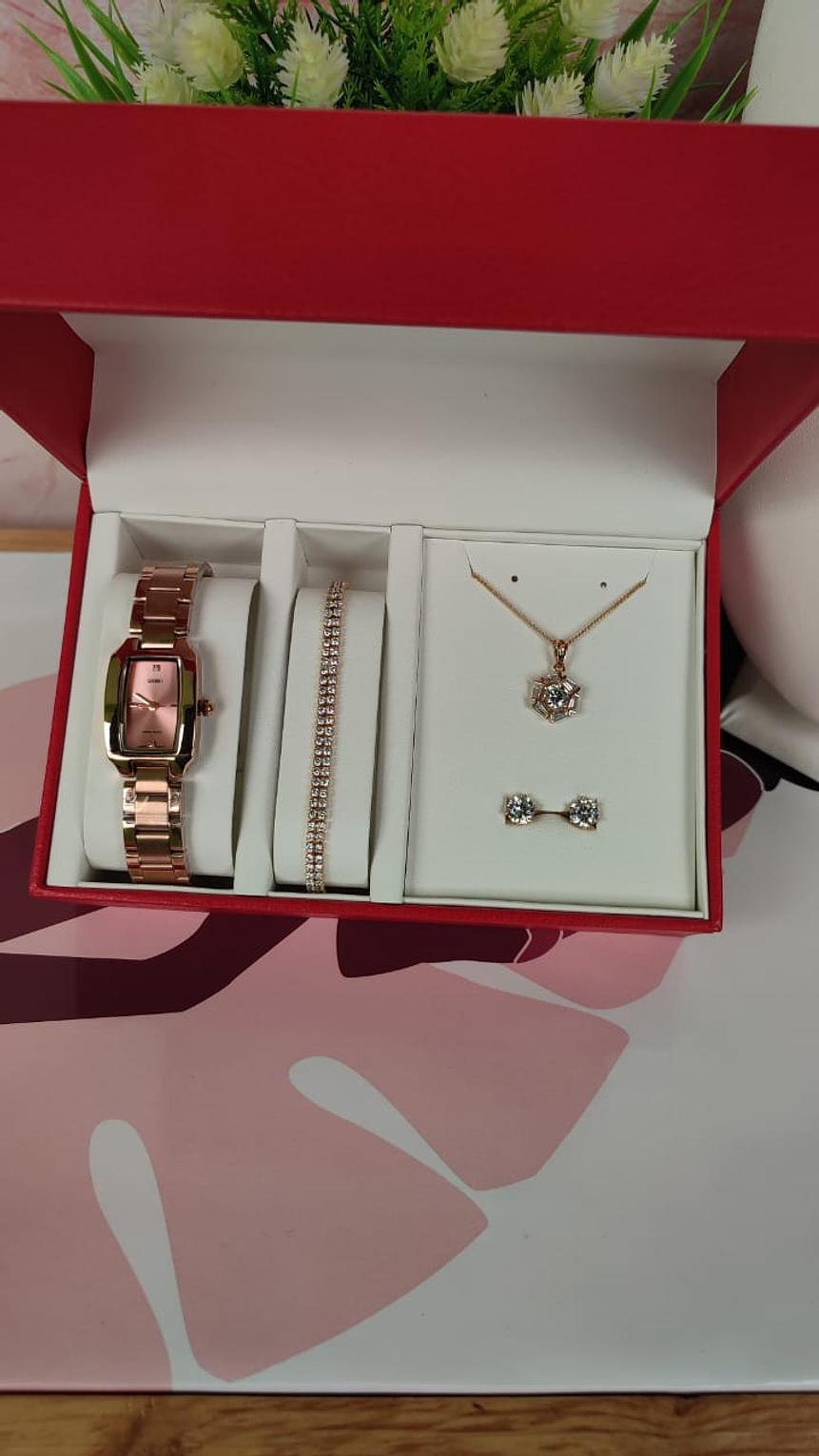 The Mbodze Set is a refined collection of a watch, bracelet, necklace, and stud earrings, offering effortless elegance and timeless sophistication.