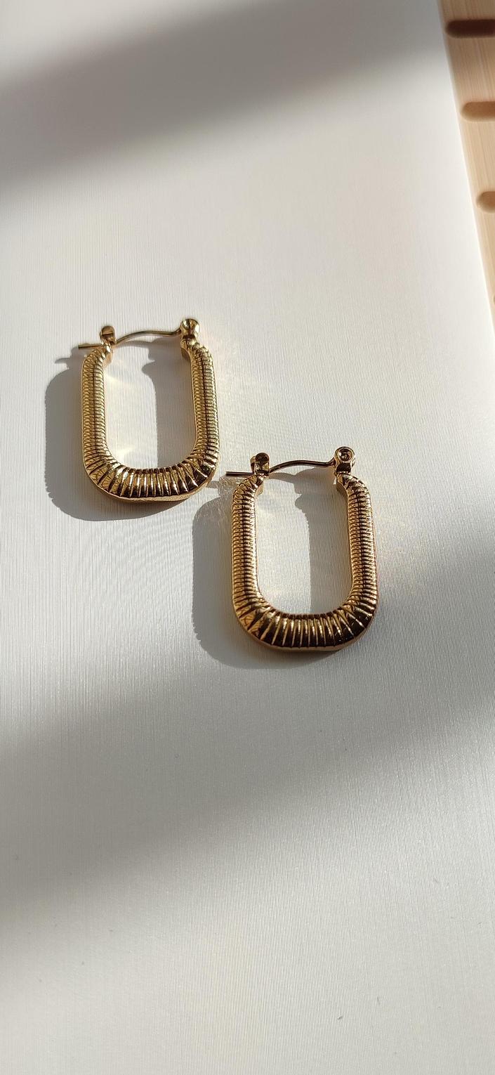 The Ripple Hoop Earrings feature a textured wave-like design, adding depth and elegance to a classic silhouette.